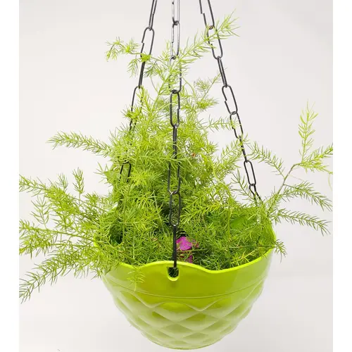 Made from high-quality, lightweight plastic, this hanging pot is sturdy, weather-resistant, and long-lasting. It comes with strong metal chains that provide excellent support and allow the planter to hang securely from ceilings, hooks, balconies, or pergolas. The durable construction ensures that the pot can easily hold soil and plants without losing its shape.